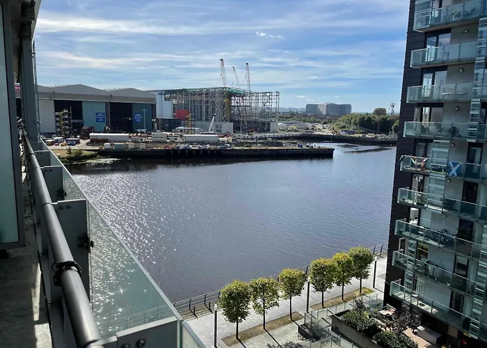 Glasgow Harbour River West End dispone di un balcone e un salottino arredato con un divano. Gli ospiti possono sfruttare al meglio il loro tempo libero con una TV a schermo piatto con canali satellitari a loro disposizione. La struttura offre 2 camere da letto dotate di cuscini in piuma ipoallergenici. Quest'appartamento offre inoltre 2 bagni che offrono un bagno alla francese, una vasca da bagno e una doccia. Inoltre, potrete usufruire di asciugacapelli e asciugamani forniti nel bagno.